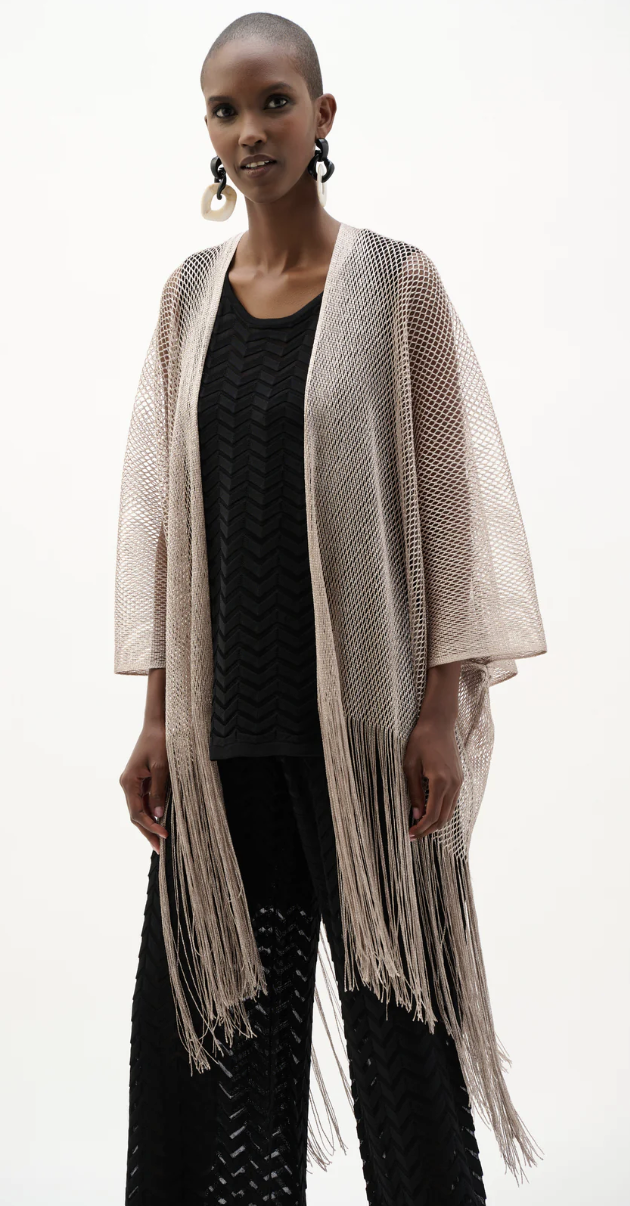 Woven Opened Stitch Draped Cover Up With Fringe 262973