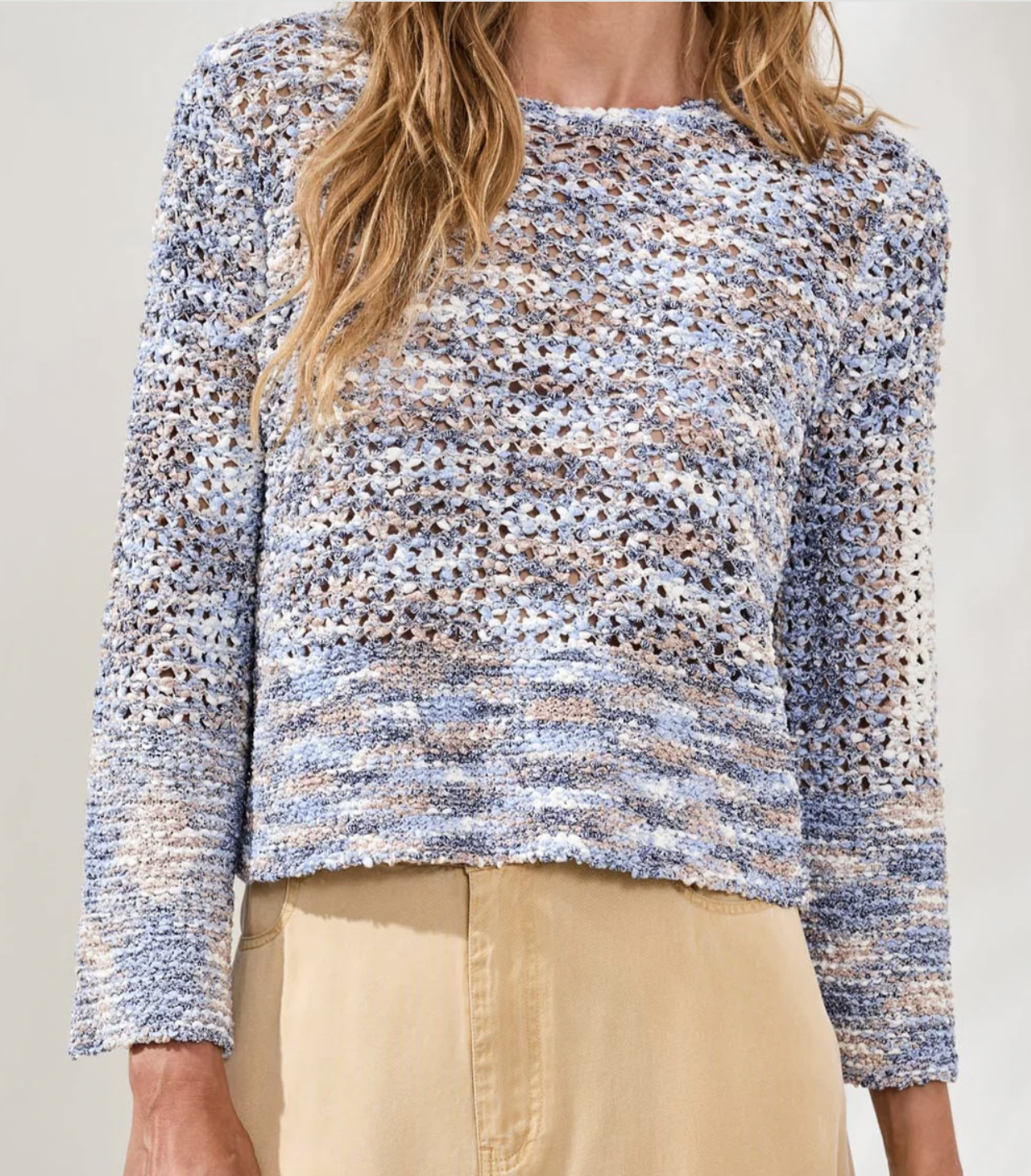 Bell Sleeve Open Stitch Crew Neck Sweater 6206O $109.00