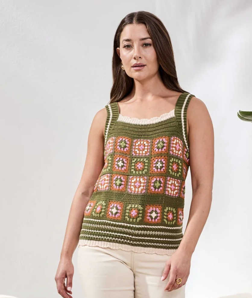Wide Strap Crochet Sweater Cami 6113O $105.00
