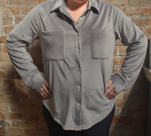 This top blends laid-back “weekender” ease with a refined ribbed knit texture—making it a comfortable yet polished pick for casual days or travel. The style typically features a relaxed silhouette, slightly dropped shoulder, and a rounded (or subtle boat) neckline, helping to balance the soft structure of the ribbed fabric with a modern, clean look. Though the exact fabric composition for this style isn’t publicly listed, similar pieces from the Dylan brand use soft, high-quality rib knits with moderate stretch for comfort and ease of movement. The ribbed texture gives the shirt subtle depth and visual interest, making it an appealing layering piece under a blazer or cardigan, or worn alone with tailored trousers or relaxed denim for elevated casual styling.