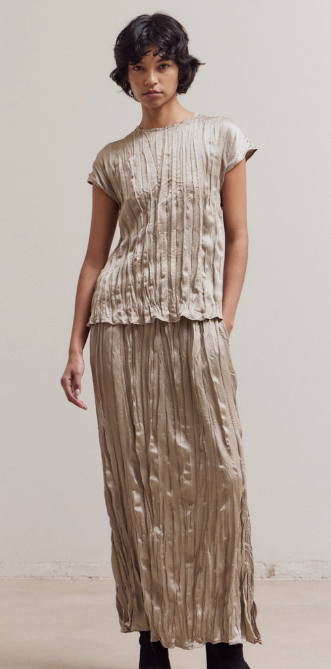 Pleated Wrinkle Satin Slit Skirt 50702 $69.00