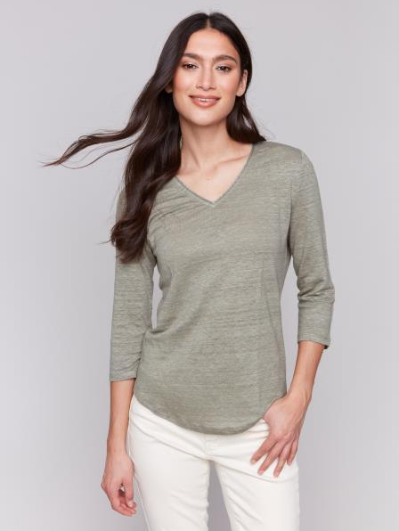 3/4 Sleeve V-Neck Top W/Neck Trim C1392PK