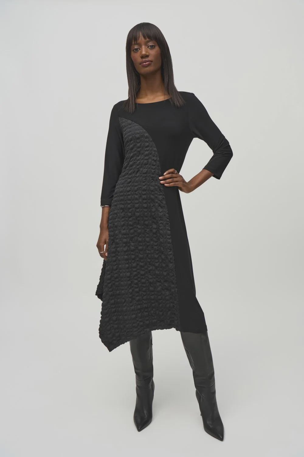 Mesh Elbow Sleeve Asymmetric Hem Dress R36525-7