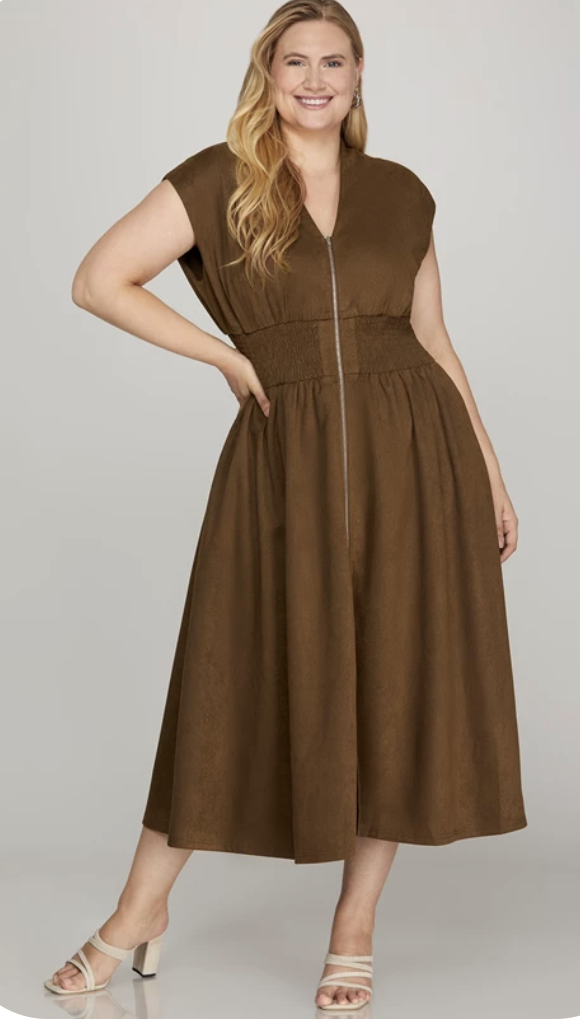 V-Neck Drawstring Knit Dress-Yadira J37525-5