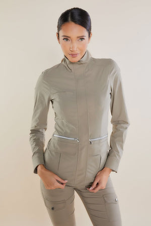 A fashion-forward update on the safari jacket for adventures far and near. This sleek style is nipped in at the waist for a flattering feminine fit and is outfitted with plenty of pockets for stashing all your travel essentials. Crafted in our signature stretch woven fabric, a lightweight stretchy material developed in France, this jacket is wrinkle-free, moisture-wicking, quick-drying and highly durable. Additionally, it'll pair perfectly with any of our essential pants that you already have in your closet.