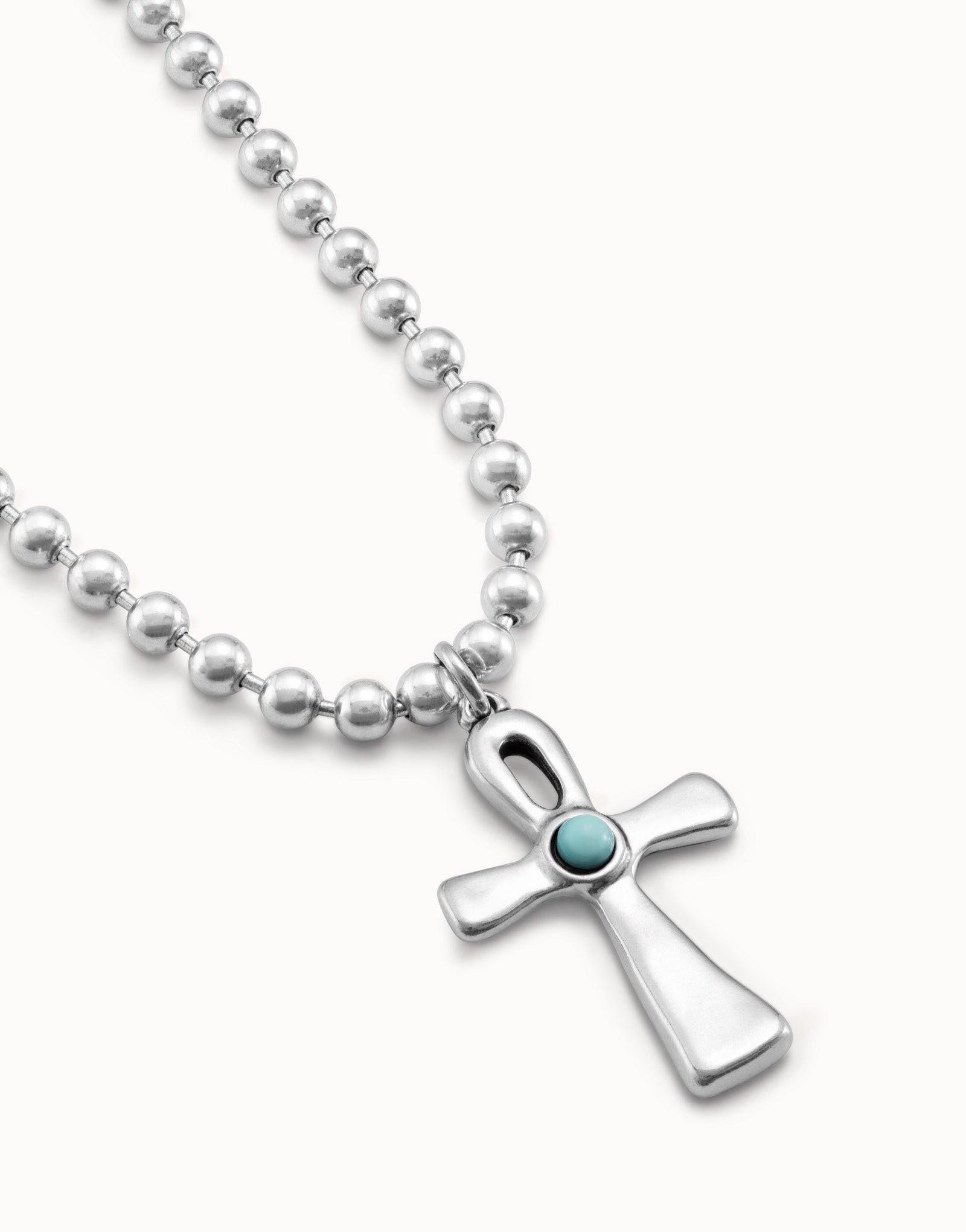 Ser Rebel Silver/Leather Long Necklace COL1962MARMTL