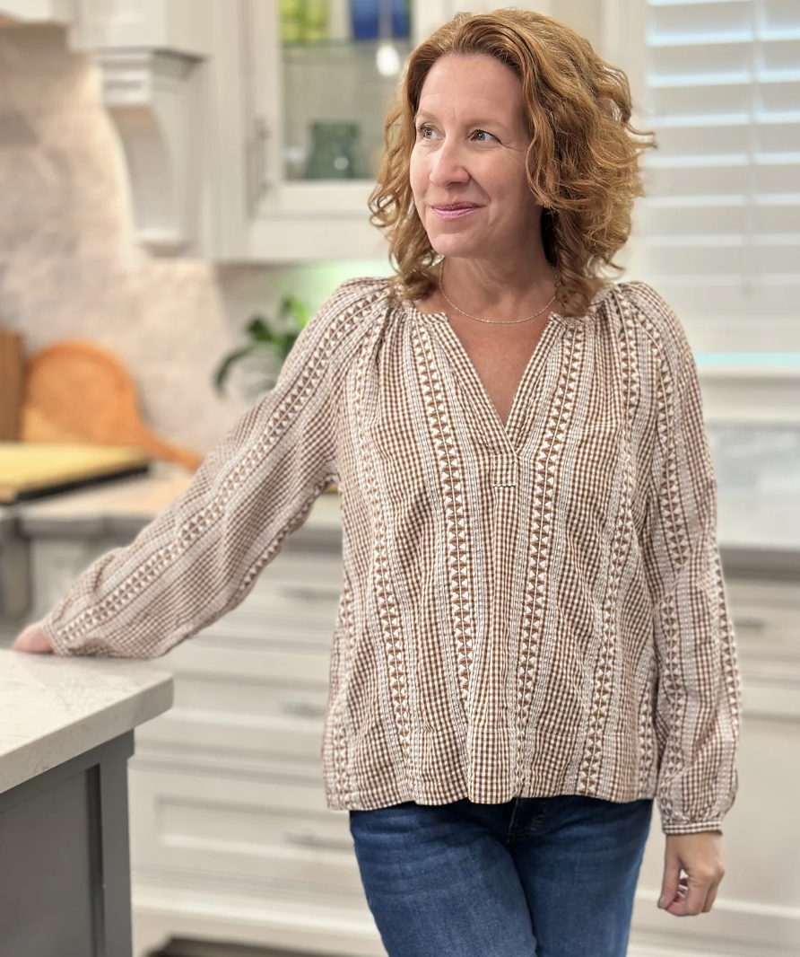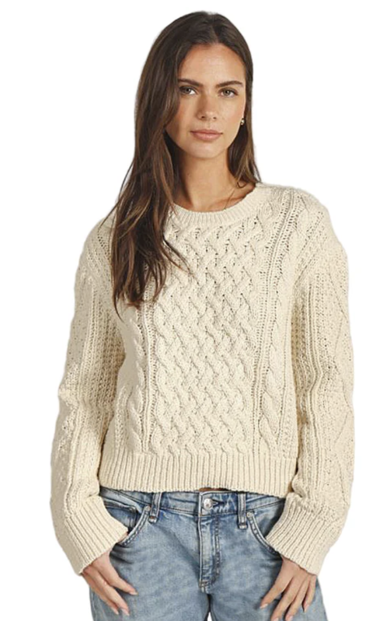 Long Sleeve Crew Neck Dropped Shoulder Jacquard Sweater LM8J12SR09J6