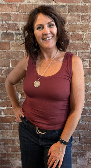 LaMade New You Rib Tank S21209 is a sleek, versatile ribbed tank top designed for effortless everyday wear. It features a fitted, slightly cropped cut that hits near the top of high-waisted jeans — offering a flattering silhouette that works well both tucked or untucked. The material is a soft knit blend of 95% modal and 5% spandex, giving it a smooth, stretchy feel that drapes gently over the body while retaining shape. The ribbed texture adds a subtle linear pattern, lending a bit of structure and visual interest to an otherwise minimal piece. Finally, the tank embodies a minimalist, clean style — easy to pair with casual outfits or layer under jackets and sweaters — making it a wardrobe staple for both relaxed and polished looks.