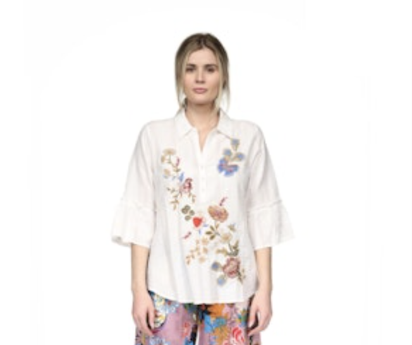 Ruffle Sleeve Henley Tunic-Florrie W22625-6